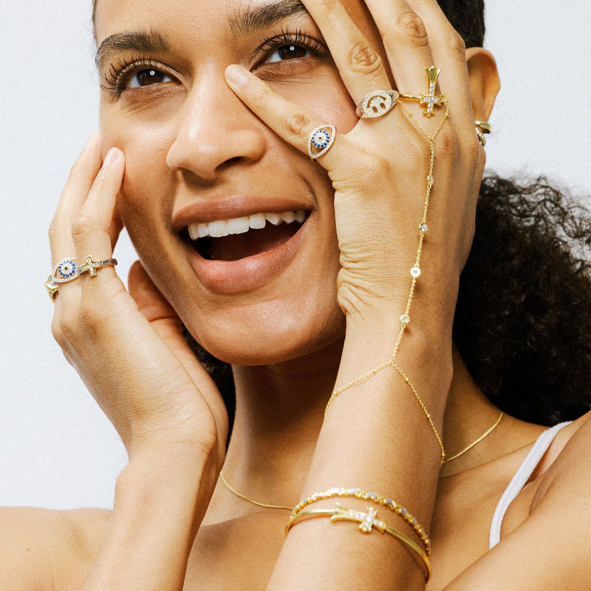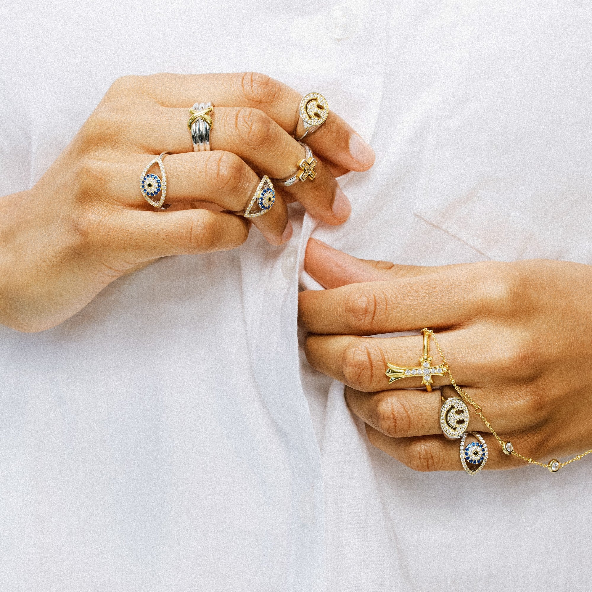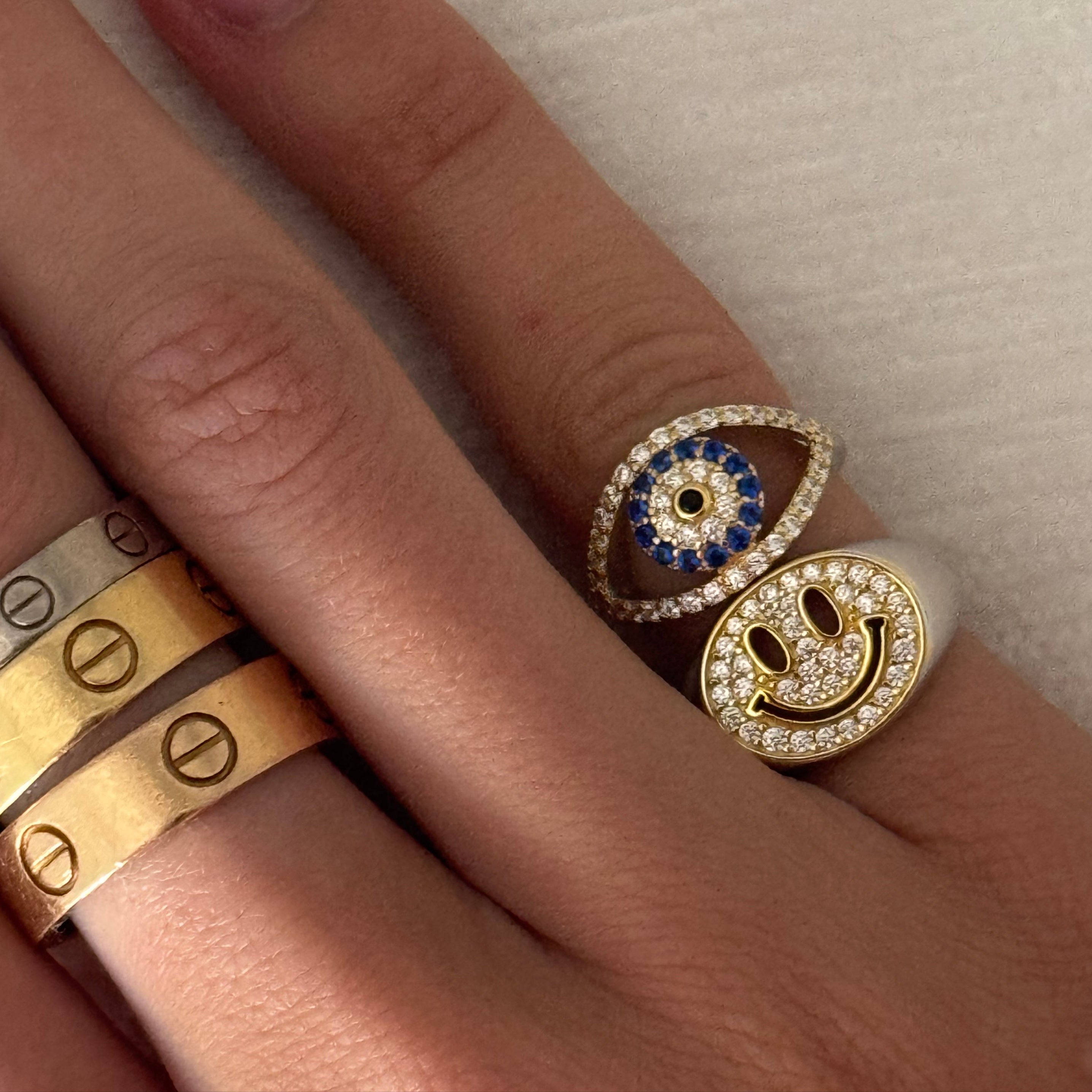 Symbolic, but subtle. The Evil Eye Ring features a sleek protective motif framed in CZs. It’s a simple way to add meaning—and shine—to your stack.