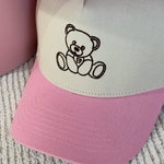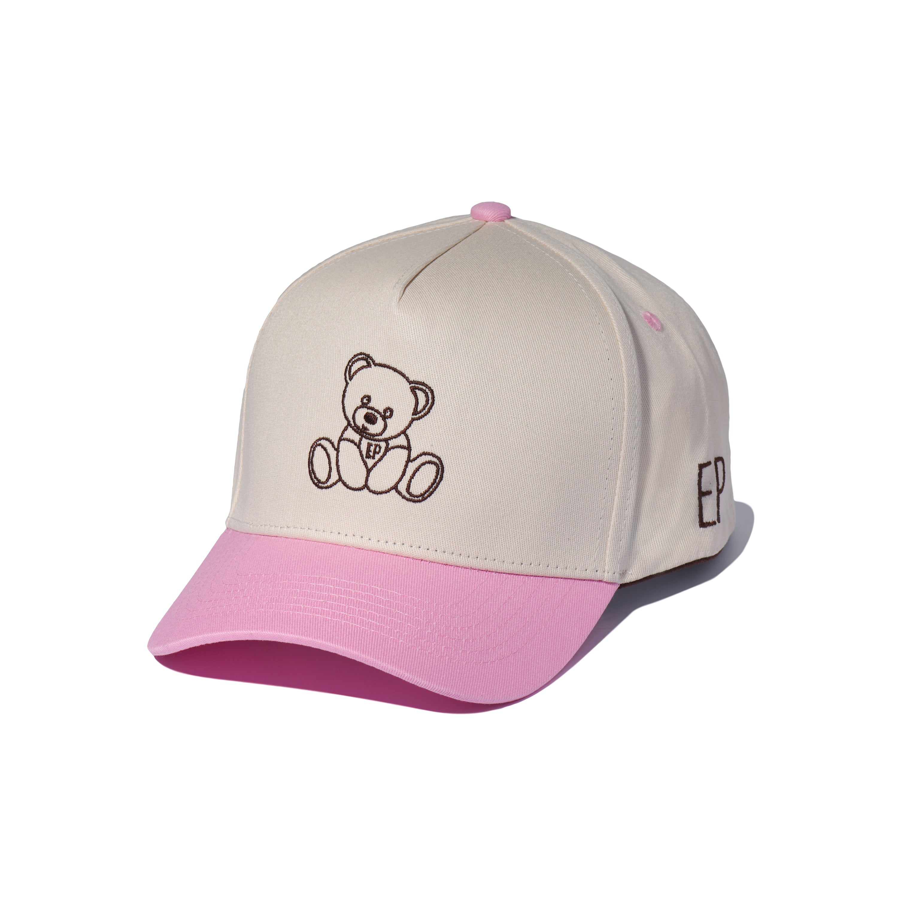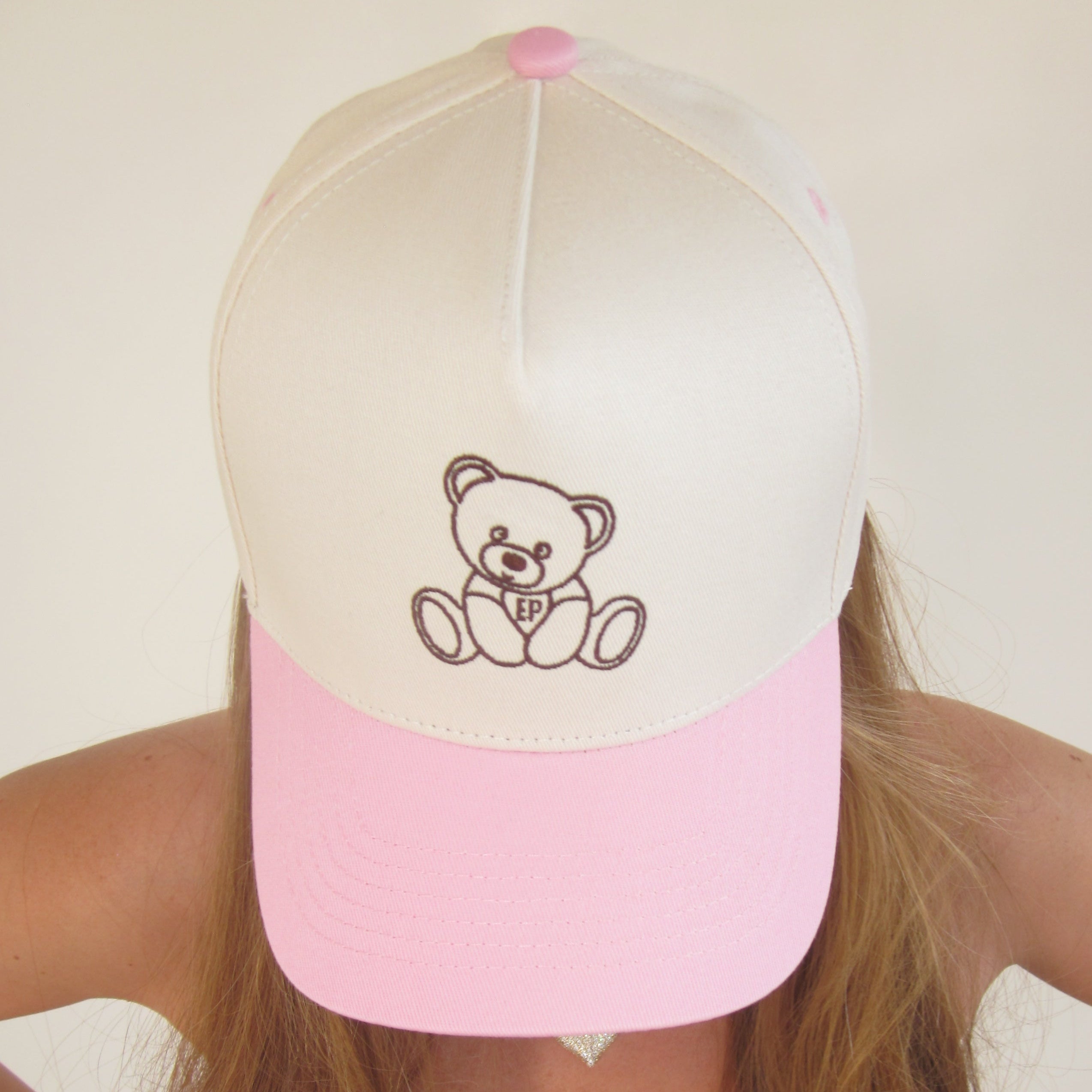 The EP Teddy Trucker Hat features our teddy bear named "OSO.” This classic epjewels.com trucker is available in Charcoal, Chocolate Brown and Baby Pink with off white accents. Made of 100% cotton twill, this 5 panel hat ensures a perfect fit with an adjustable strap, making it your new go to accessory for your everyday style.