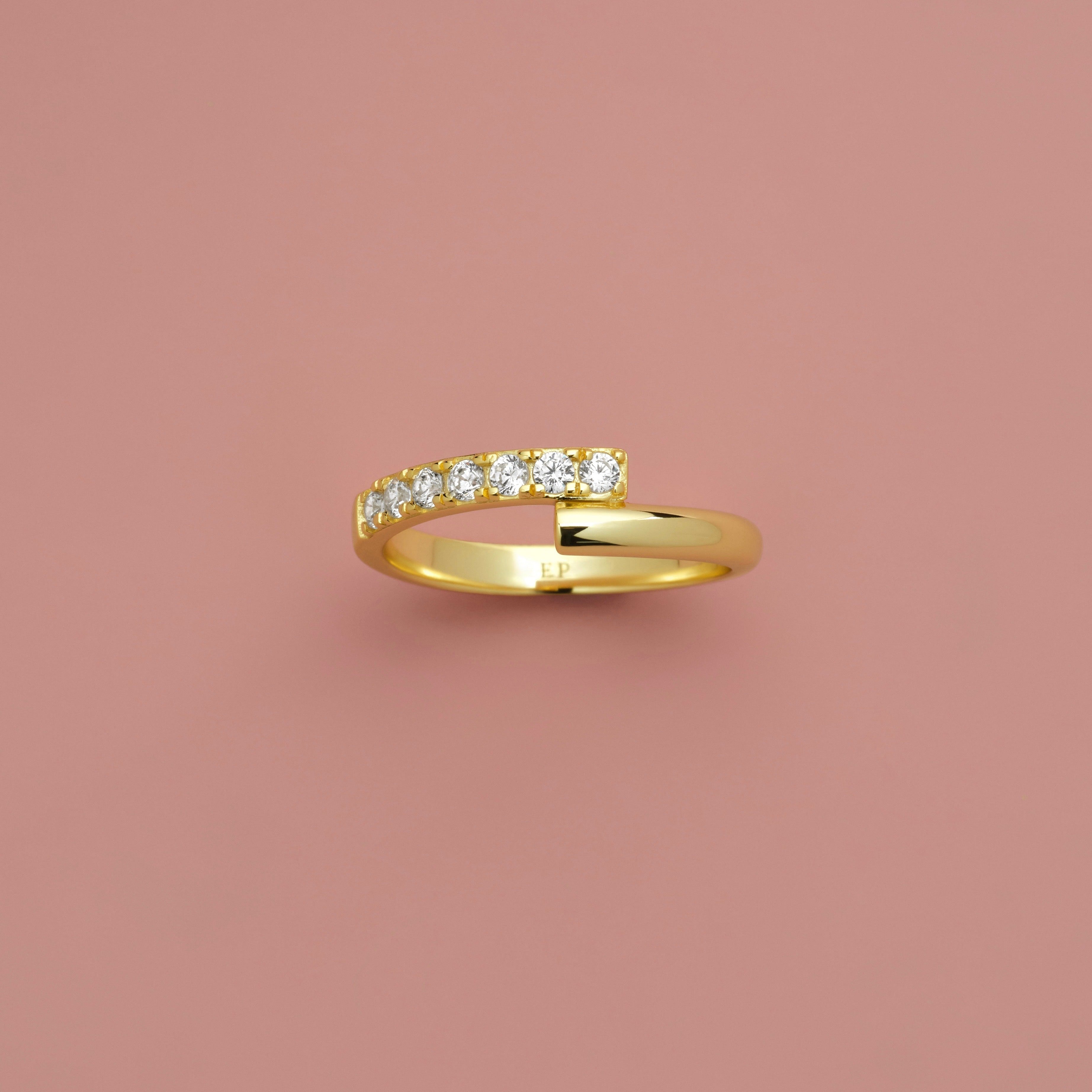 A soft crossover silhouette in solid 14K gold, accented with a row of lab-grown diamonds. Designed to add dimension - it wears beautifully solo or stacked.