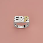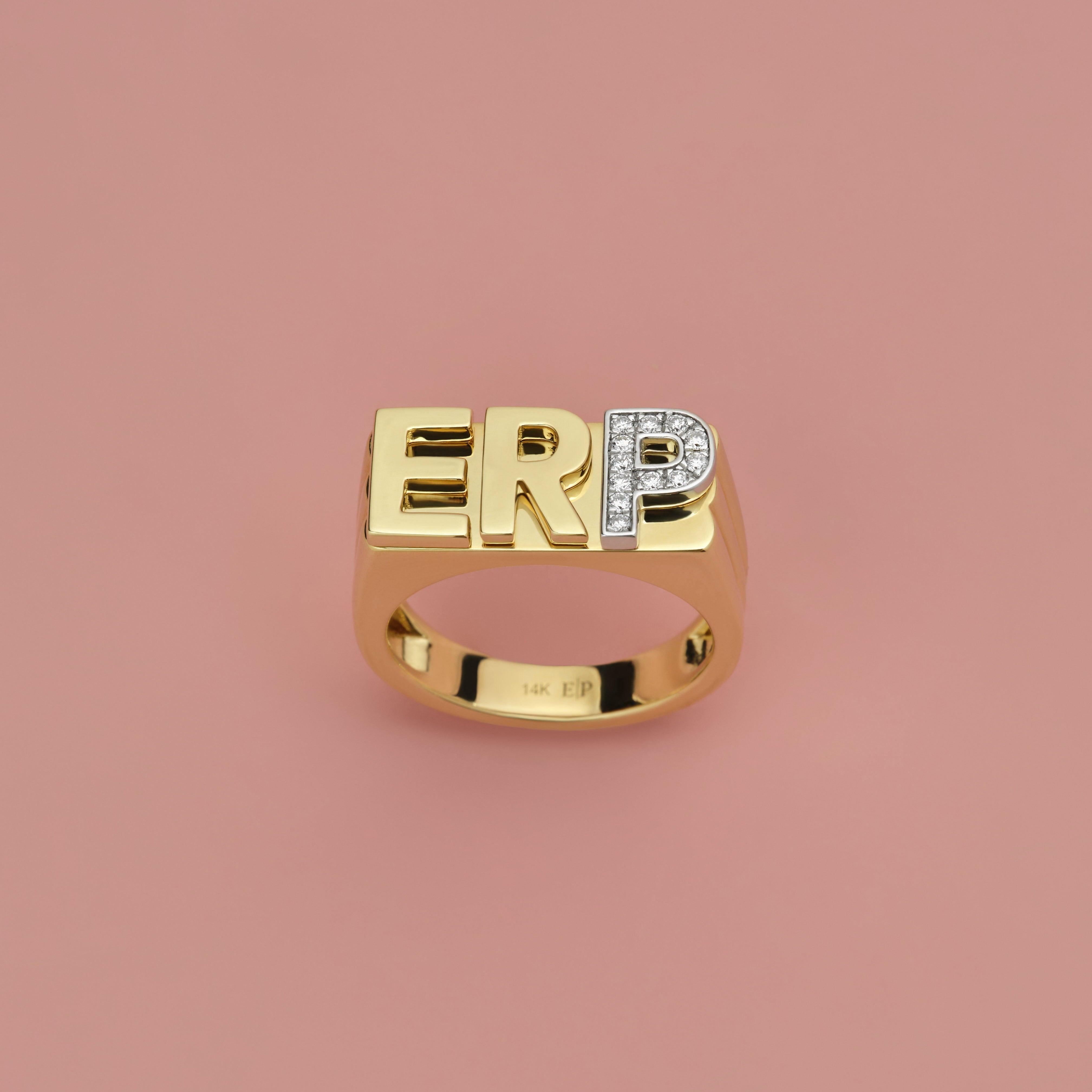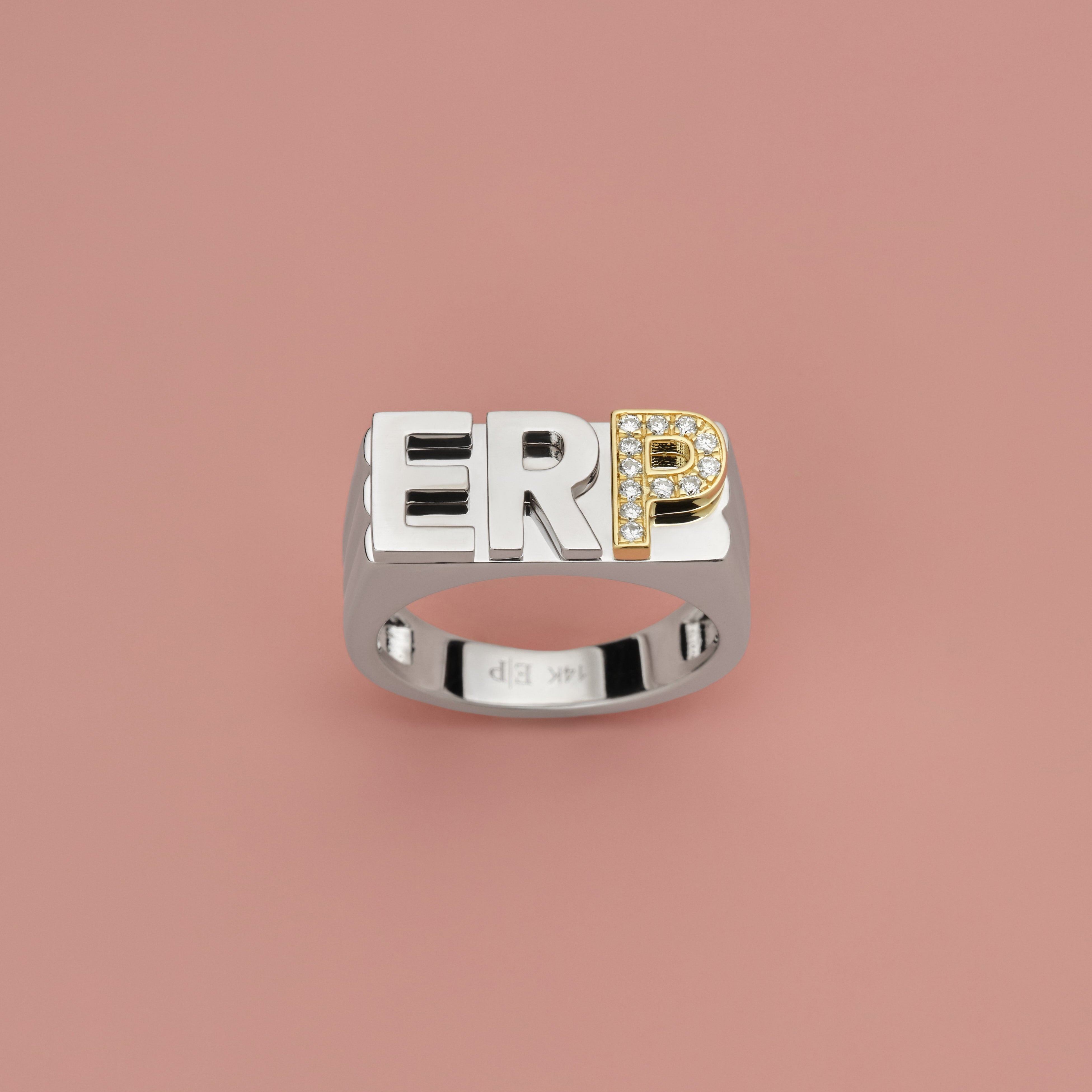 Worn daily by Evange for over two years - now yours. The two tone solid 14k gold + lab diamond initial pinky ring is a classic that started EP Timeless.