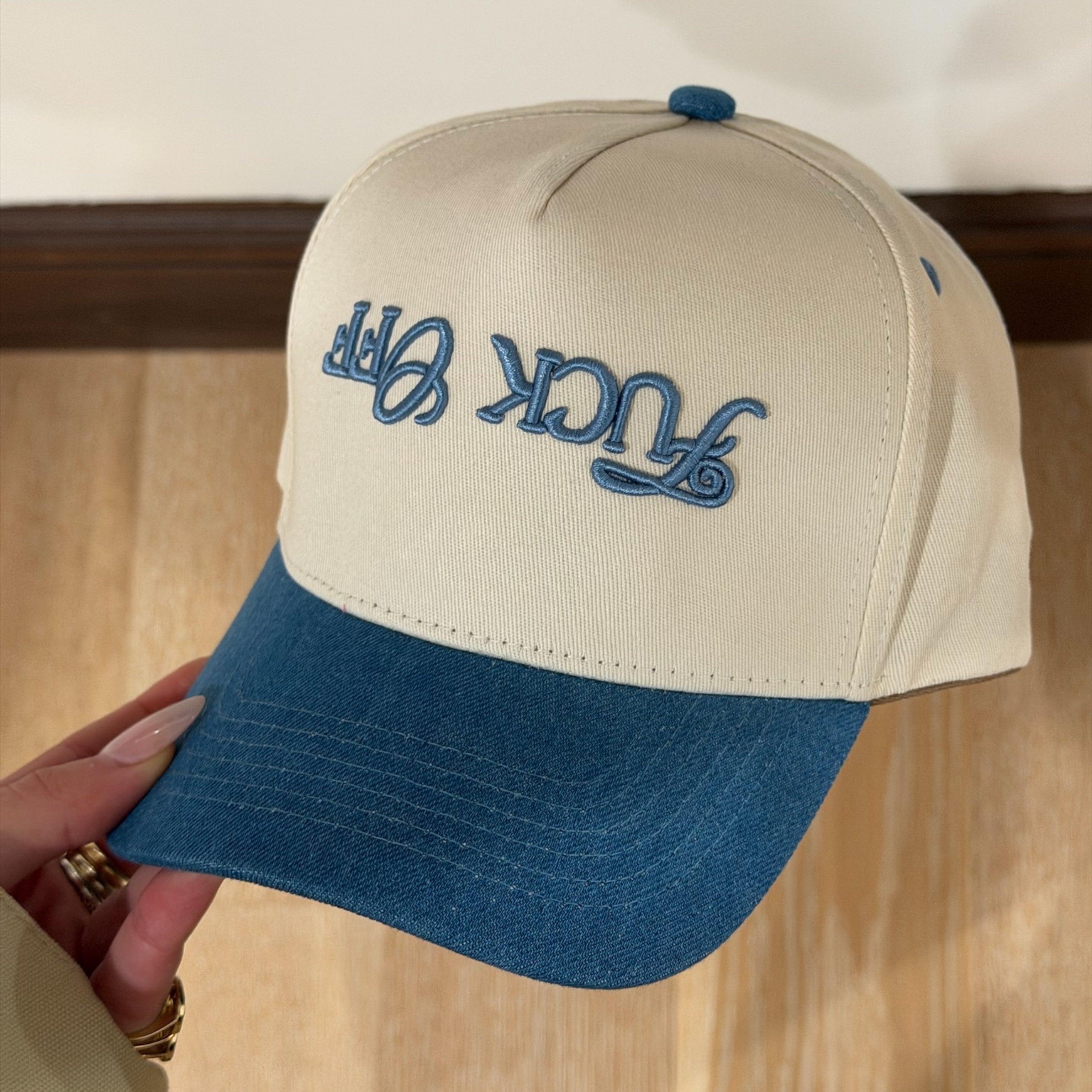 THE F OFF DENIM TRUCKER HAT