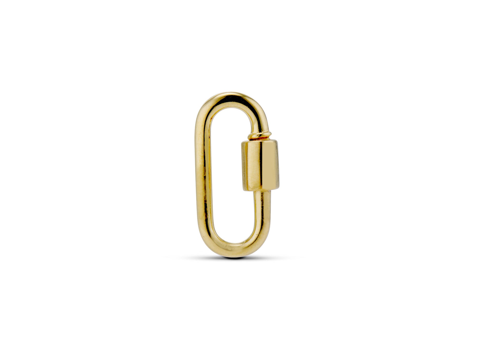 The Baby Ring Link Carabiner is a chic and functional accessory designed to enhance your ring stack. Crafted from sterling silver, plated in 14k gold, it features a secure, spring-loaded clasp that allows you to easily attach or detach charms or other elements. The Baby Ring Link Carabiner from epjewels.com is a versatile piece that blends practicality and style, offering a unique way to personalize your rings or create custom combinations.