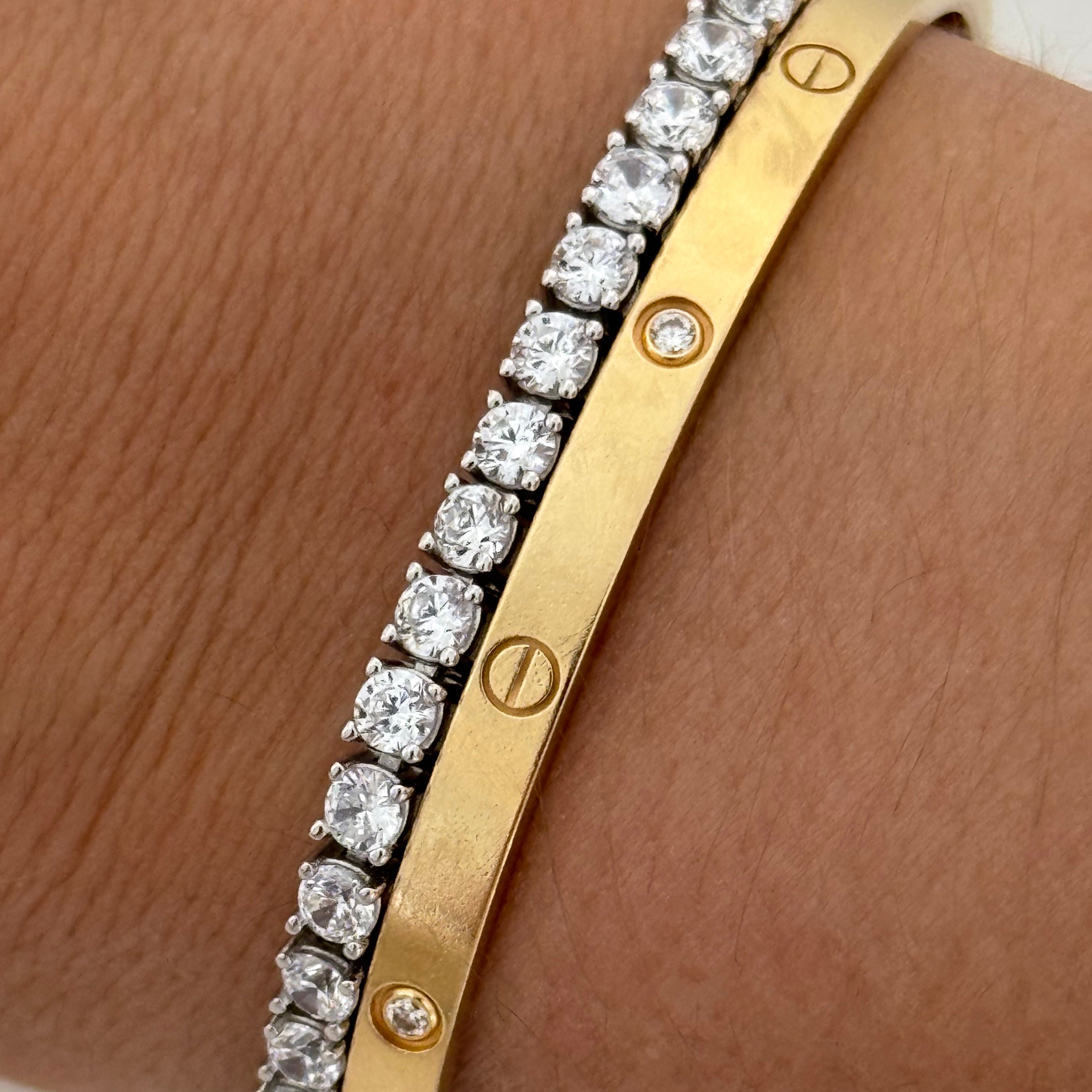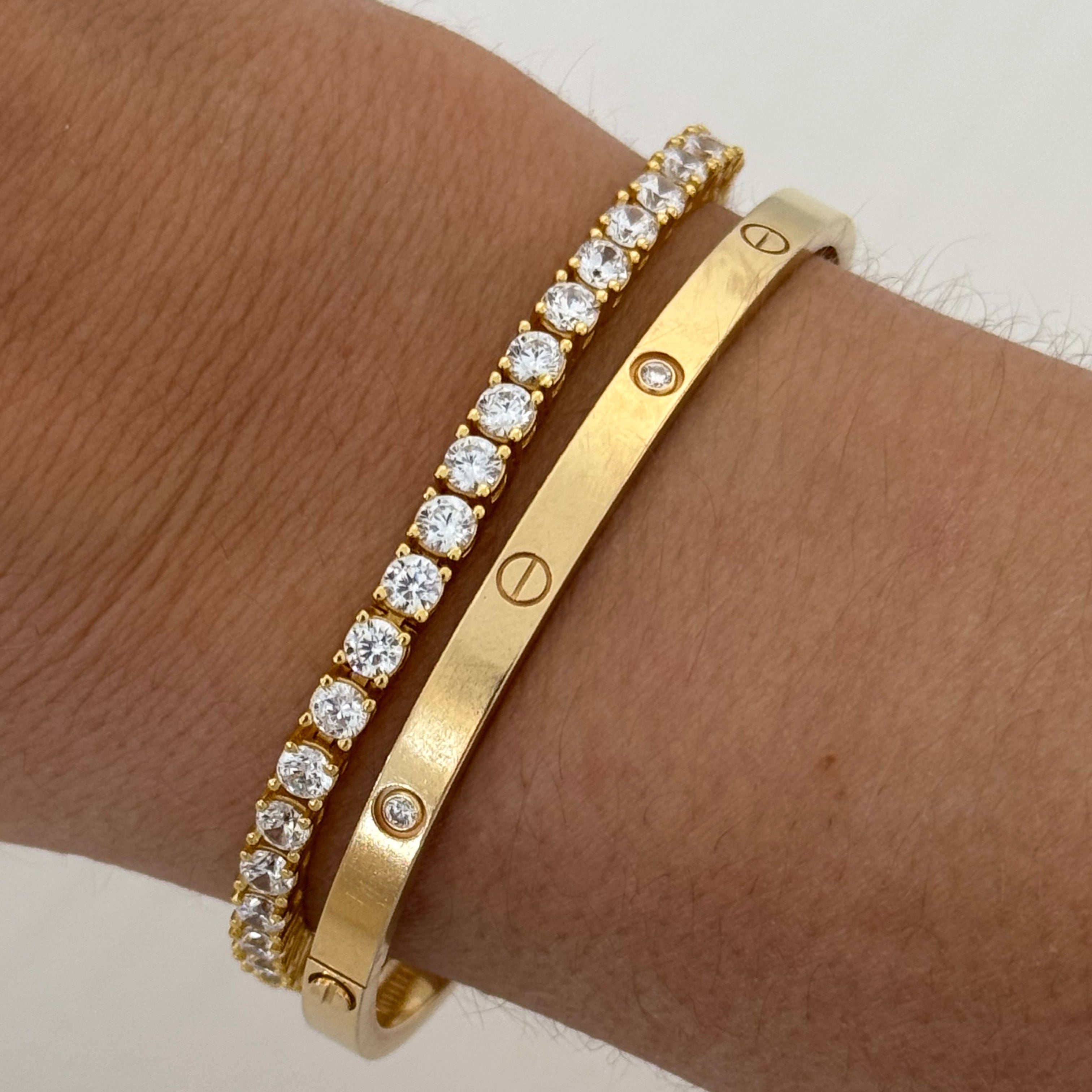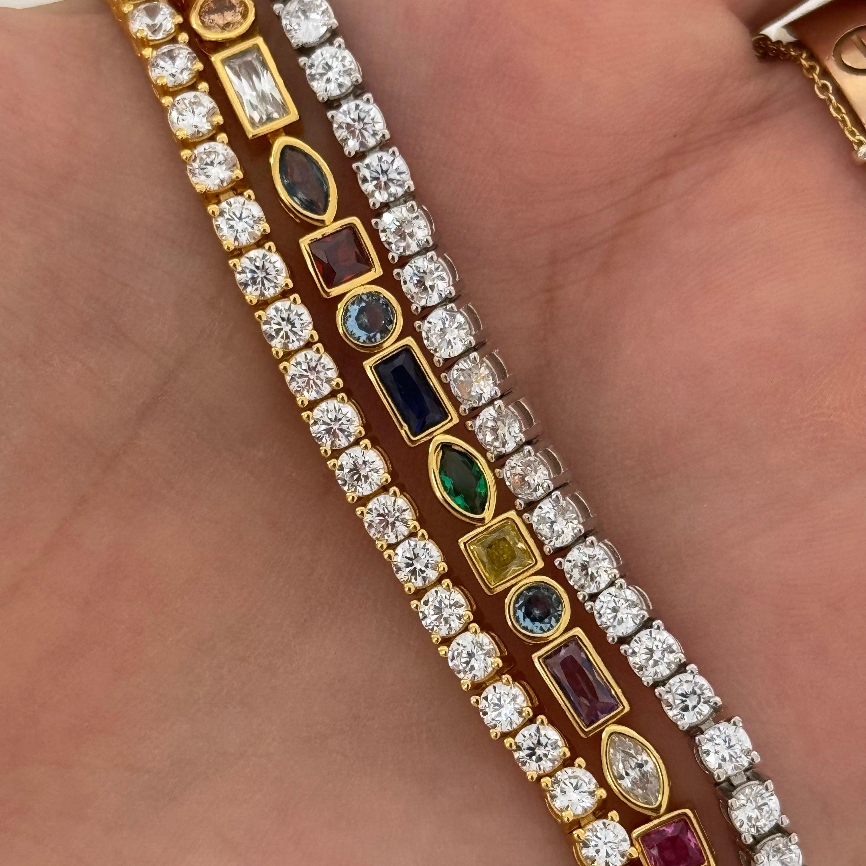 The Classic Tennis Bracelet is a sophisticated piece designed with sparkling cubic zirconia stones, set in a timeless tennis chain style. This elegant epjewels.com Classic Tennis Bracelet is available in your choice of 18k gold plating or rhodium plating, offering a luxurious finish that enhances its brilliance. Perfect for any occasion, it’s a versatile accessory that adds a touch of glamour to both everyday wear and special events.