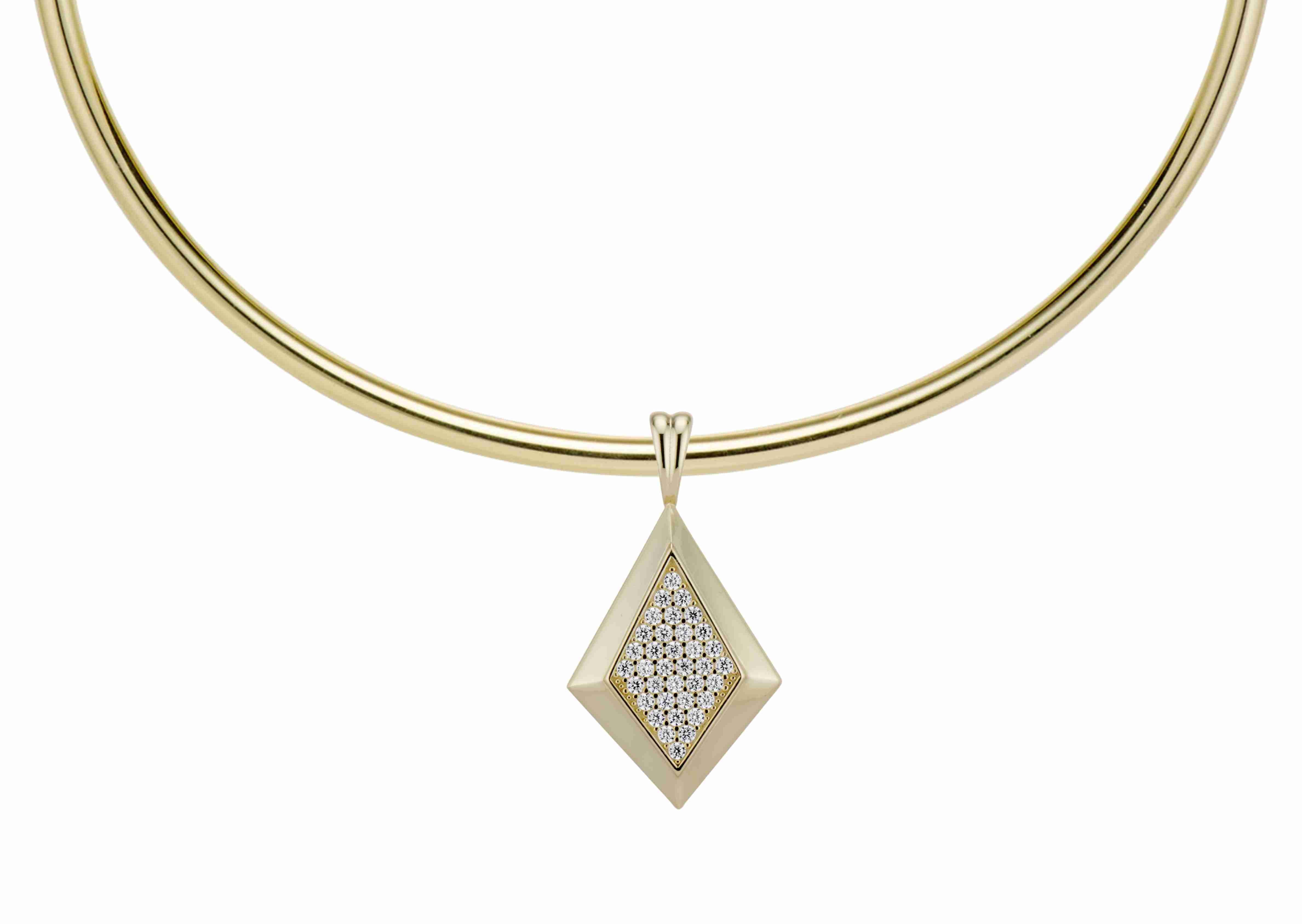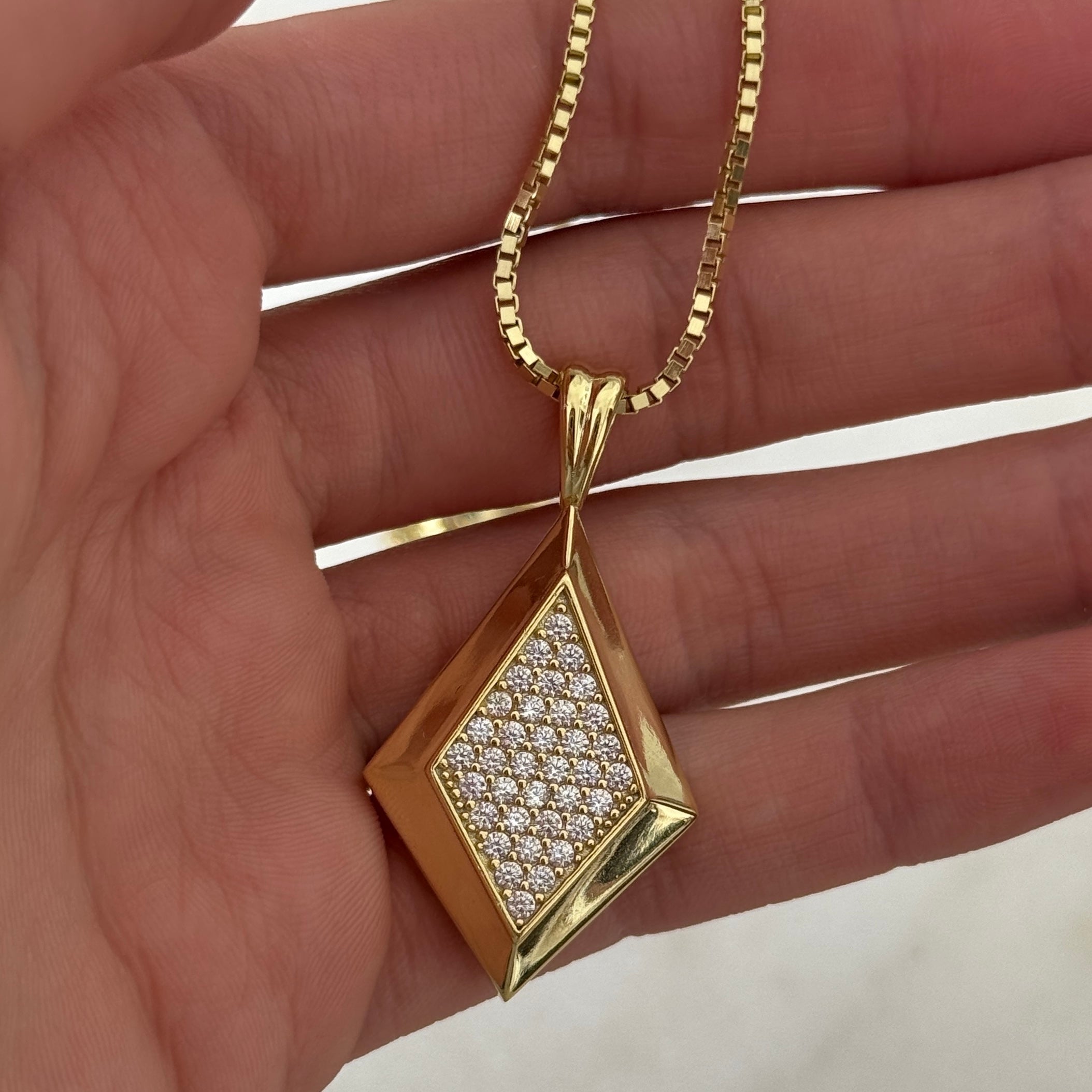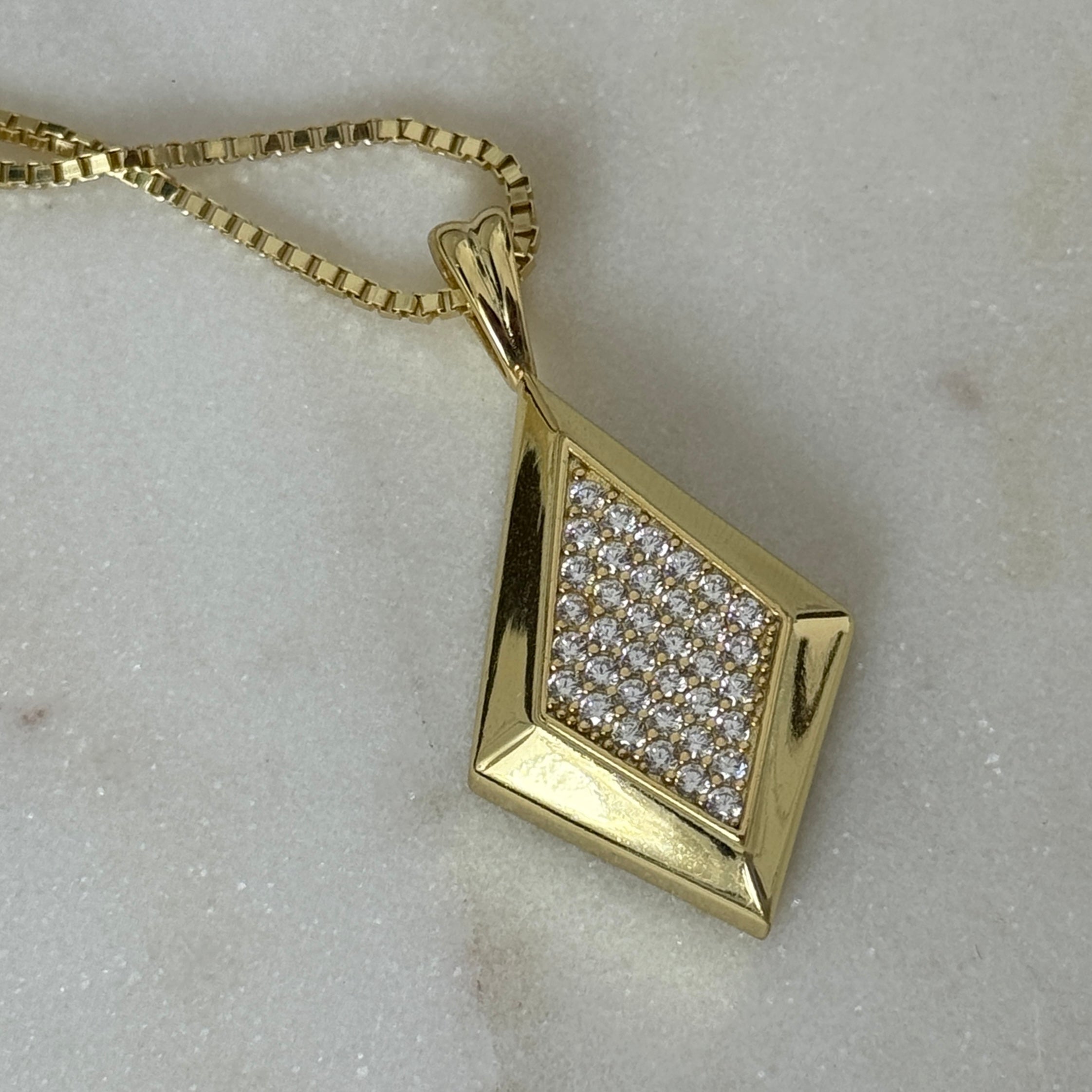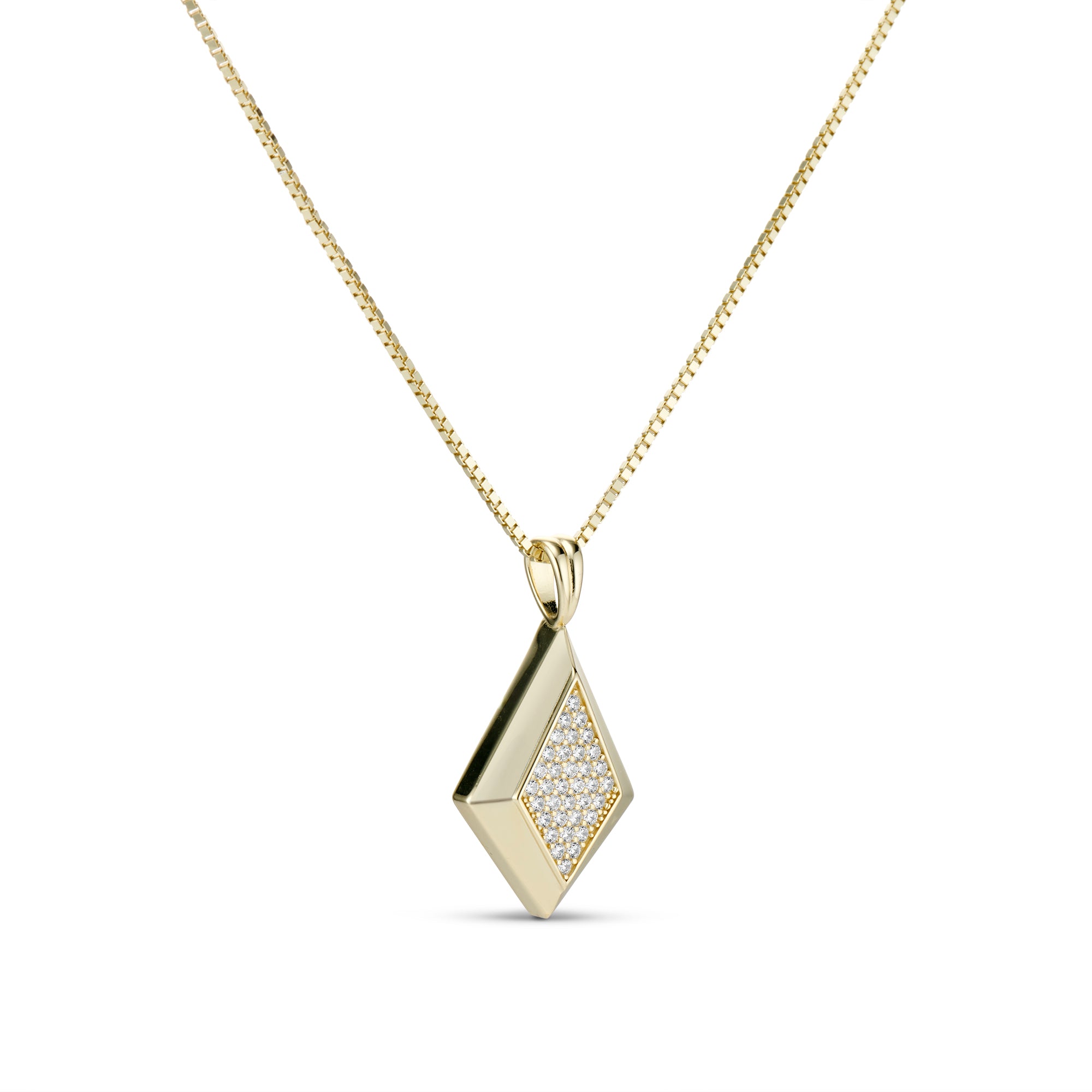 The CZ Taylor Necklace showcases a stunning diamond-shaped pendant, embellished with shimmering cubic zirconia stones. Its sleek design features elegance and brilliance. Available in yellow gold plating, this necklace is a versatile addition to any jewelry collection. Perfect for both daily wear and special occasions, the epjewels.com CZ Taylor Necklace brings a sophisticated and radiant touch to any look.