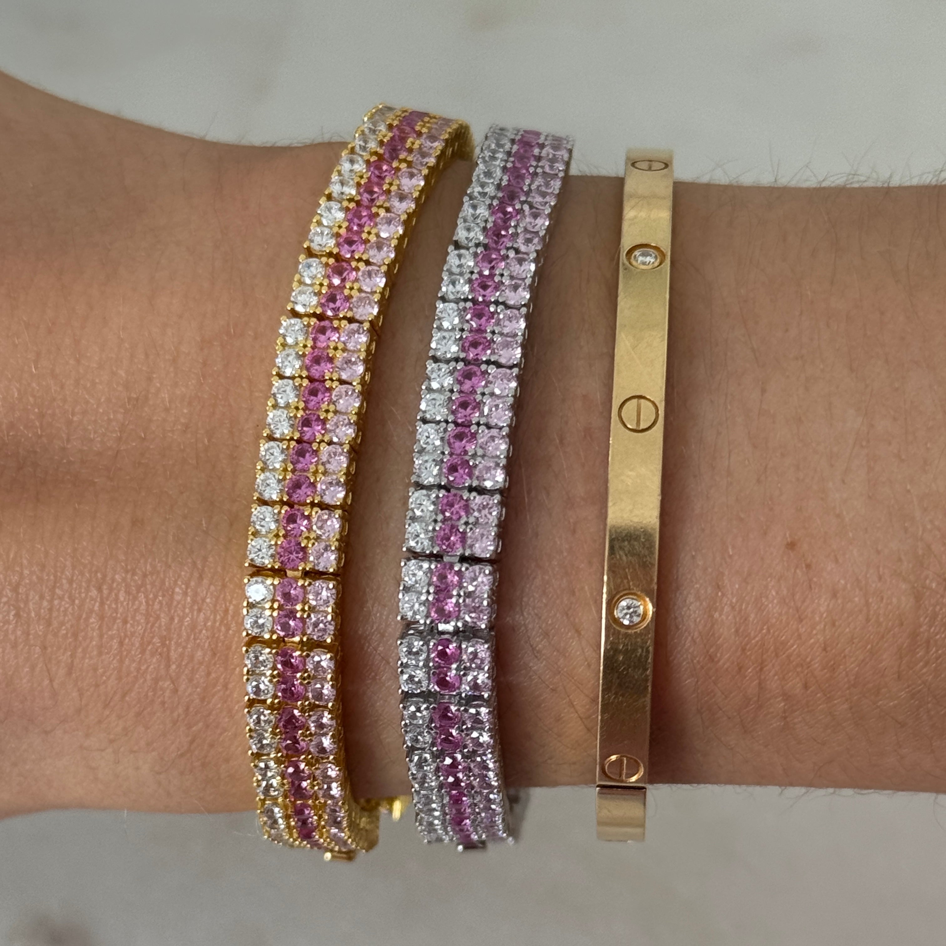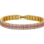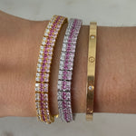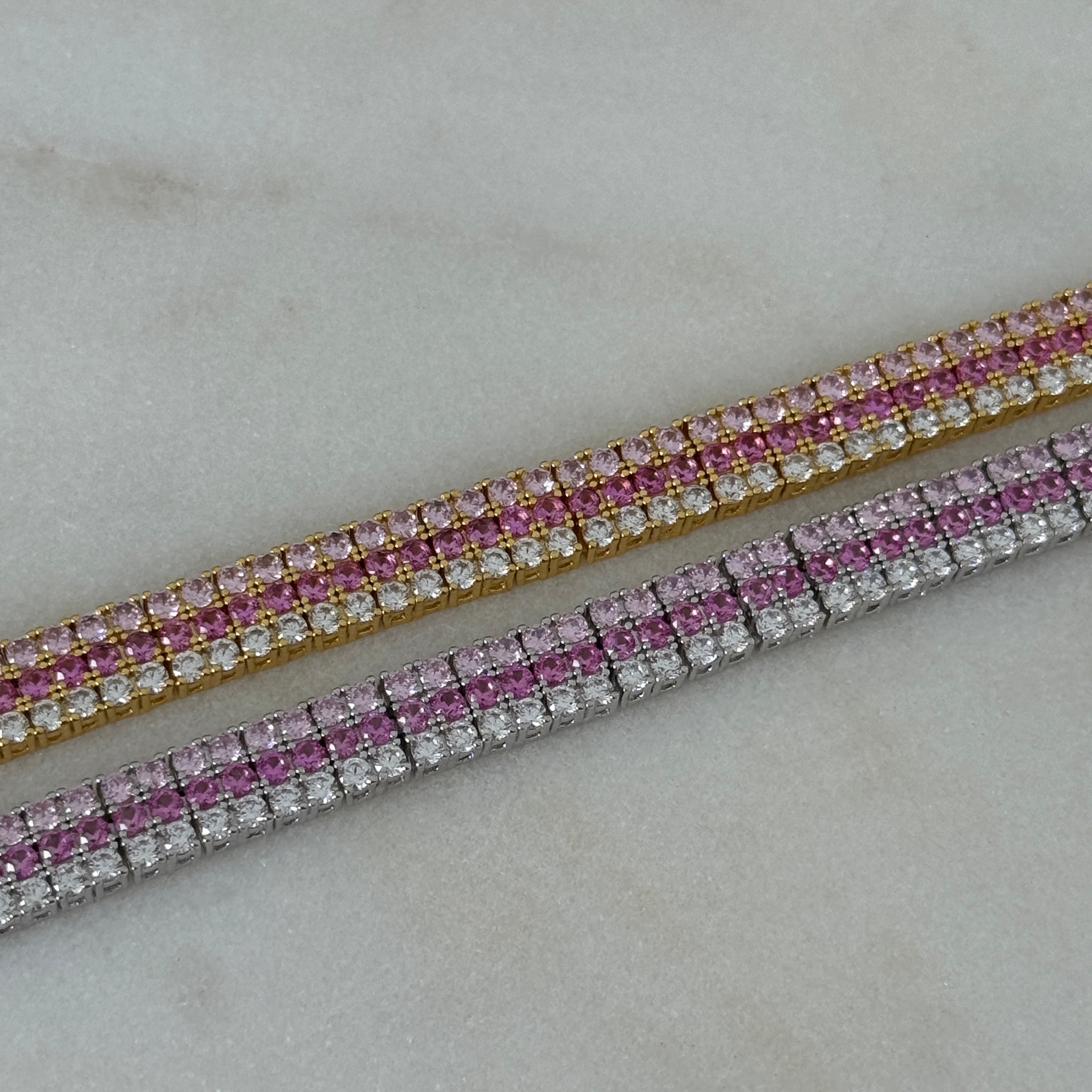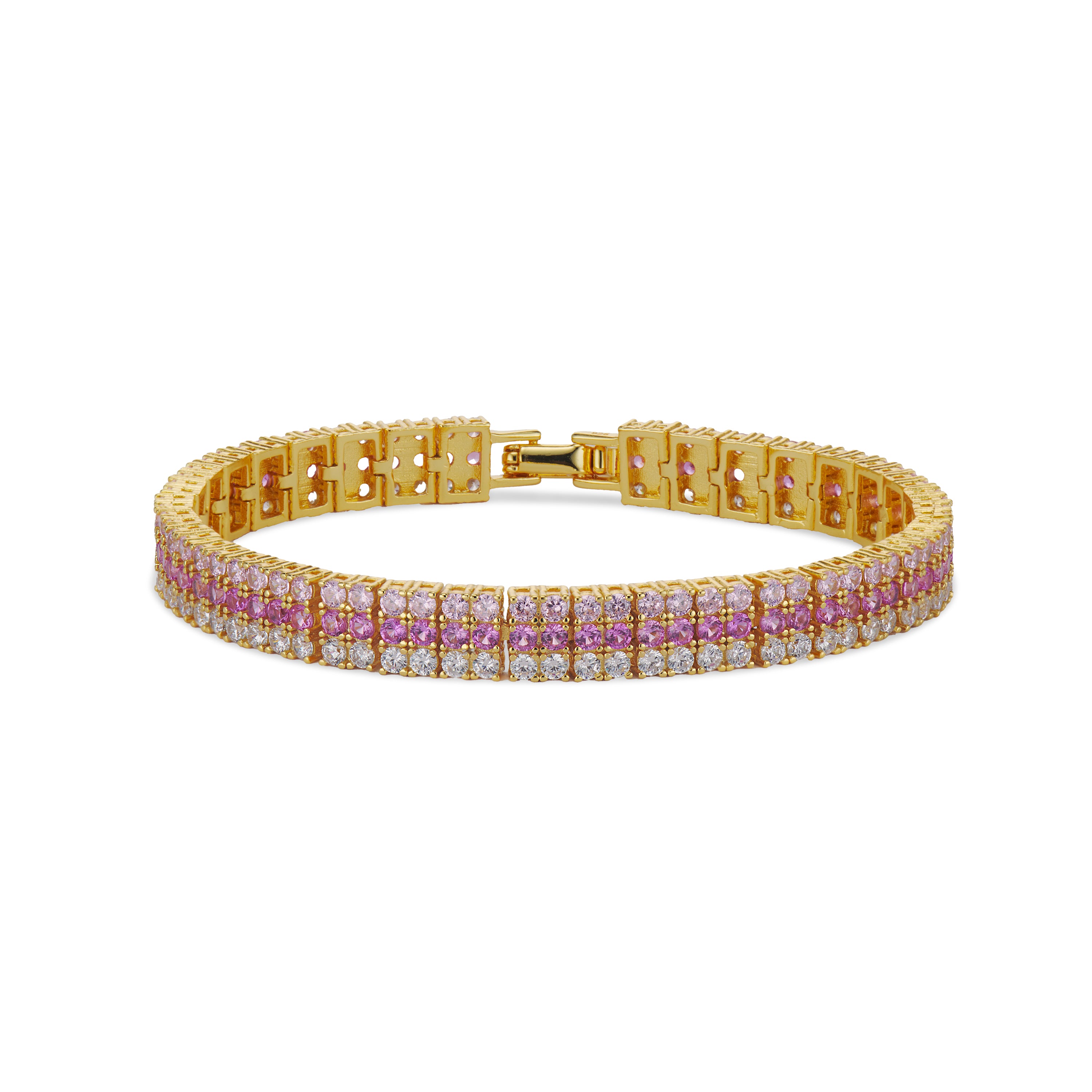 The Delaney Pink Tennis Bracelet features radiant pink cubic zirconia stones & adds a touch of elegance and glamour to any outfit. Whether you’re dressing up for a special event or elevating your everyday look, the epjewels.com Delaney Pink Tennis Bracelet is designed to impress and make a lasting impression.