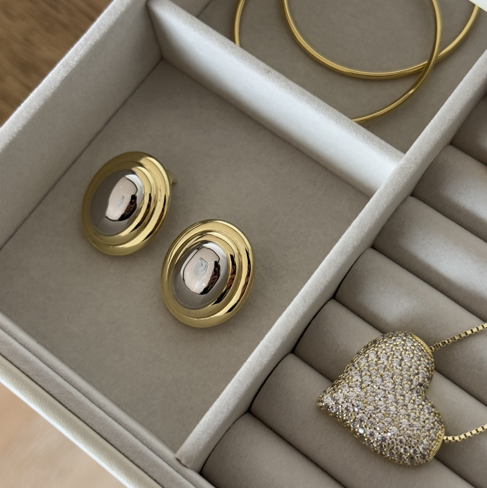 The Oval Eclipse Two-Tone Earring features an oval shape and a mix of contrasting metals, creating a bold, contemporary look. The combination of gold and silver tones adds sophistication, making them perfect for both everyday wear and special occasions. The epjewels.co Oval Eclipse Two-Tone Earring offers a stylish, versatile touch to any outfit.