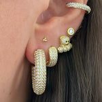 The Gold Chunky Pave Hoop Earring in elegant sterling silver with 14k gold plating is a stunning and sophisticated accessory. These epjewels.com hoop earrings feature a chunky design with pave-set stones, adding a touch of sparkle and glamour to your ensemble. The gold finish gives them a luxurious and elegant look, perfect for any occasion. Made from sterling silver with 14k gold plating, these earrings offer both durability and a high-quality finish. The pave setting adds an extra level of sophistication and creates a dazzling effect when they catch the light. These earrings are versatile enough to be worn with both casual and formal attire, making them a perfect addition to your jewelry collection. Whether you want to elevate your everyday style or add a touch of elegance to a special occasion, the gold chunky pave hoop earrings are a fabulous choice.