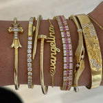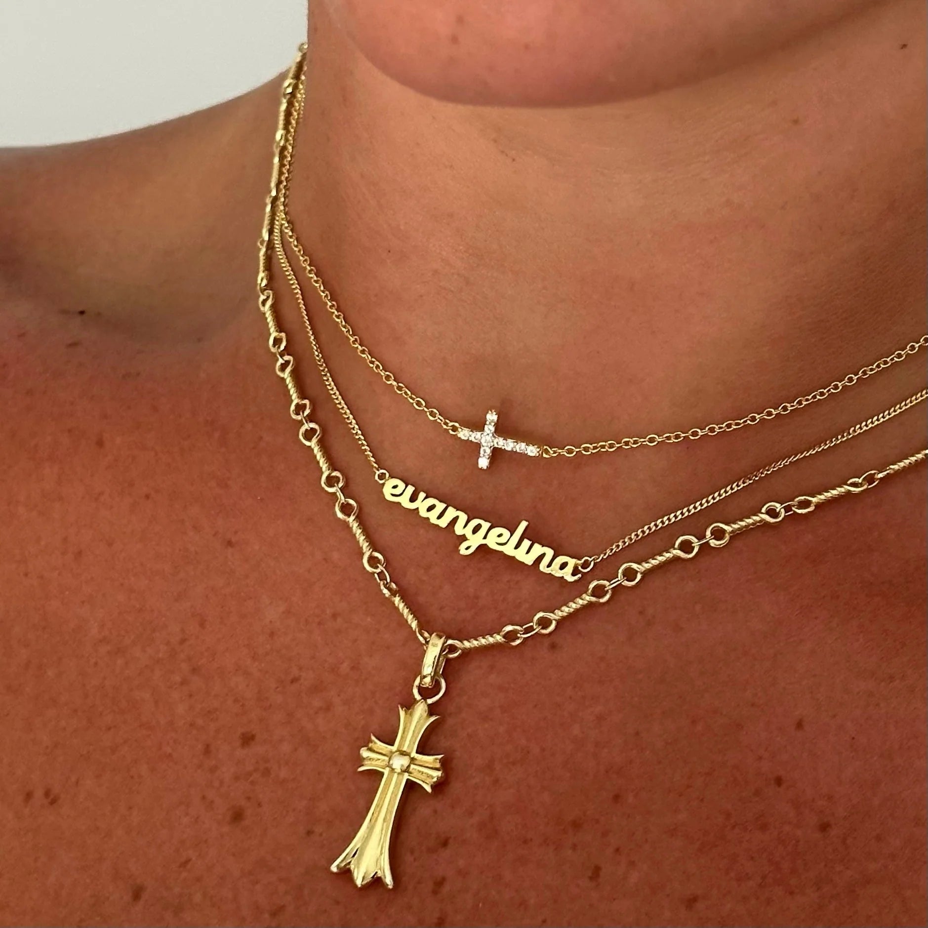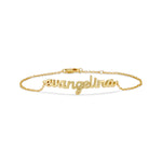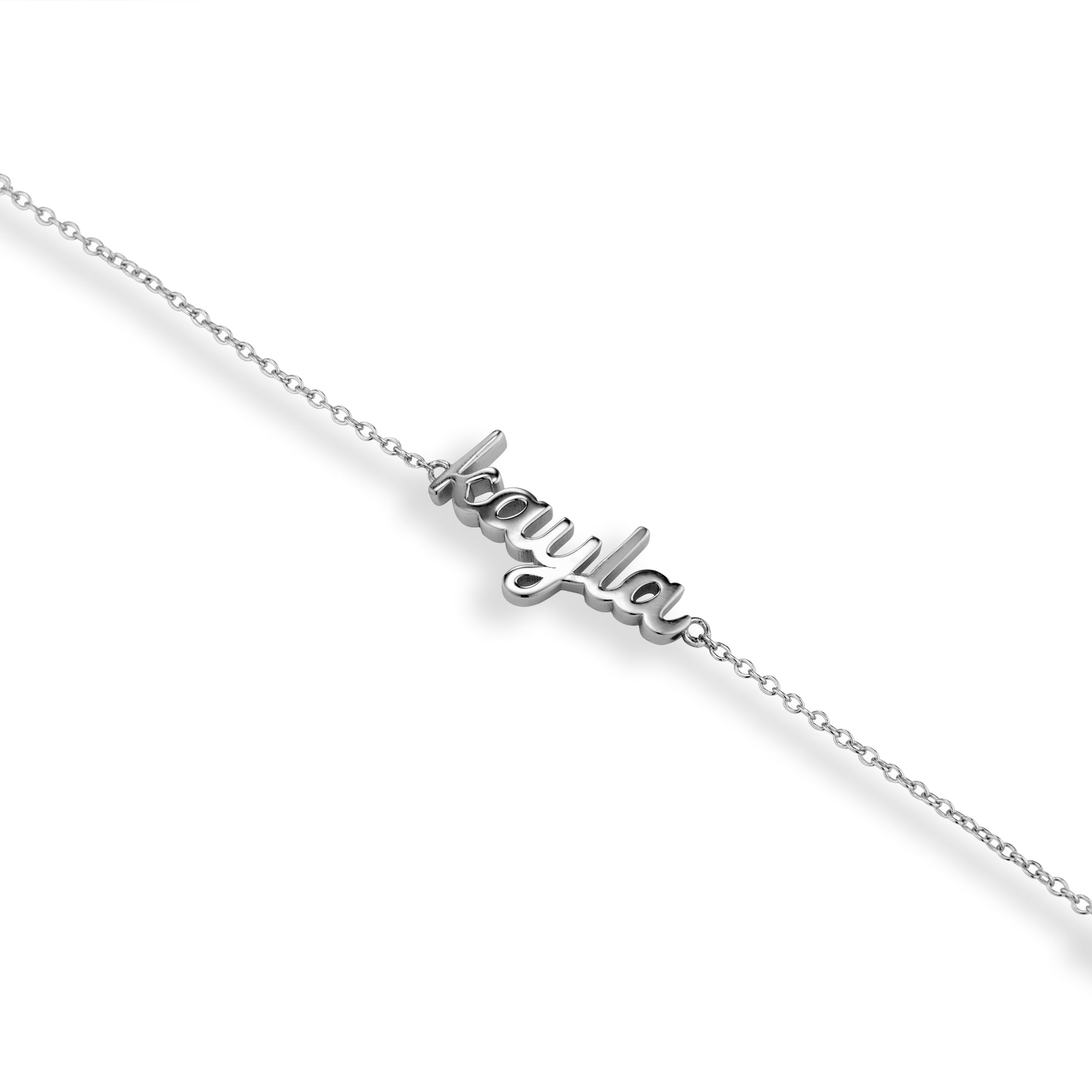 Introducing our custom name collection, crafted with 925 sterling silver and available in your choice of 14k gold plating or rhodium plating. We offer 9 design options for you to choose from. Personalize yours with your name or a special word and enjoy a unique and fashionable accessory.