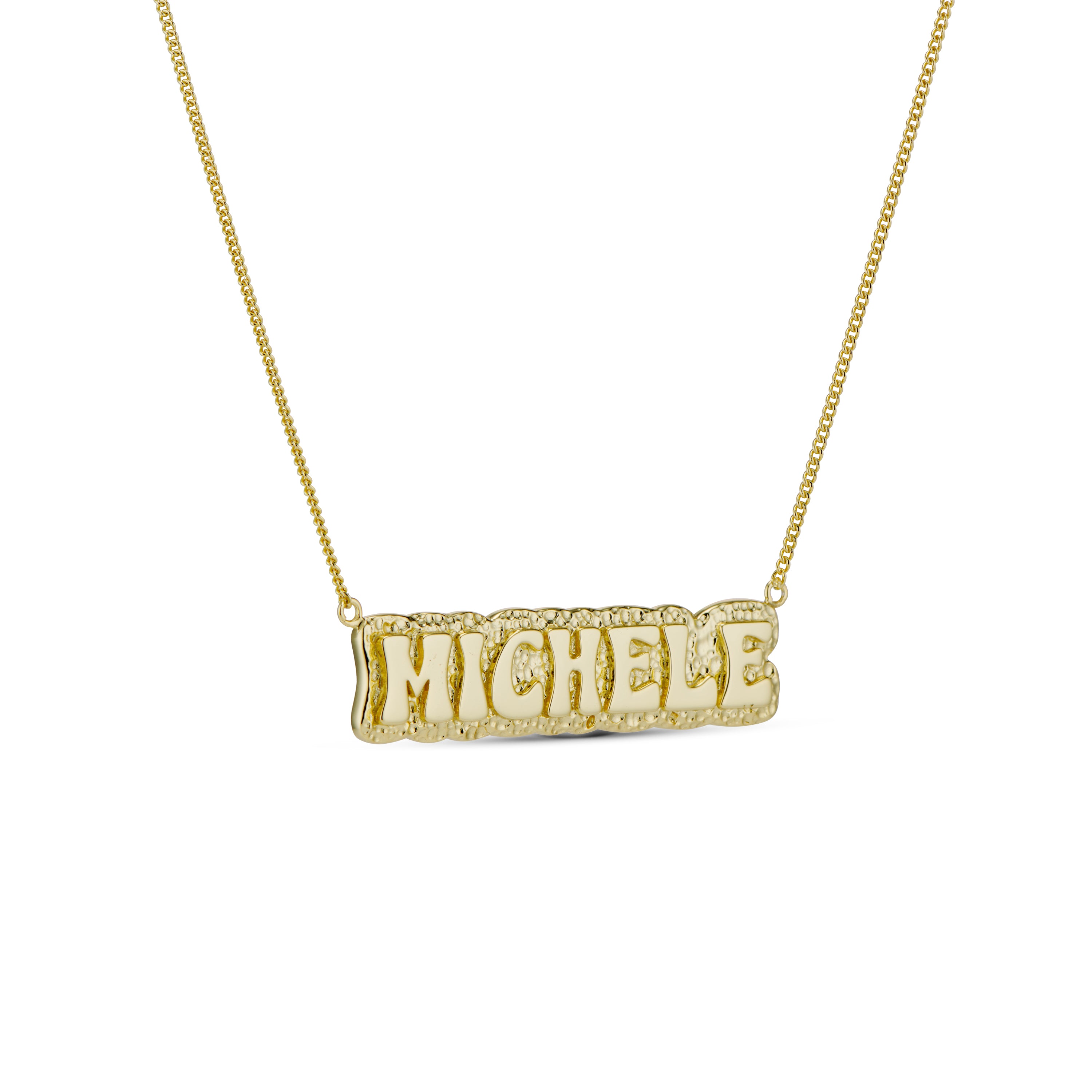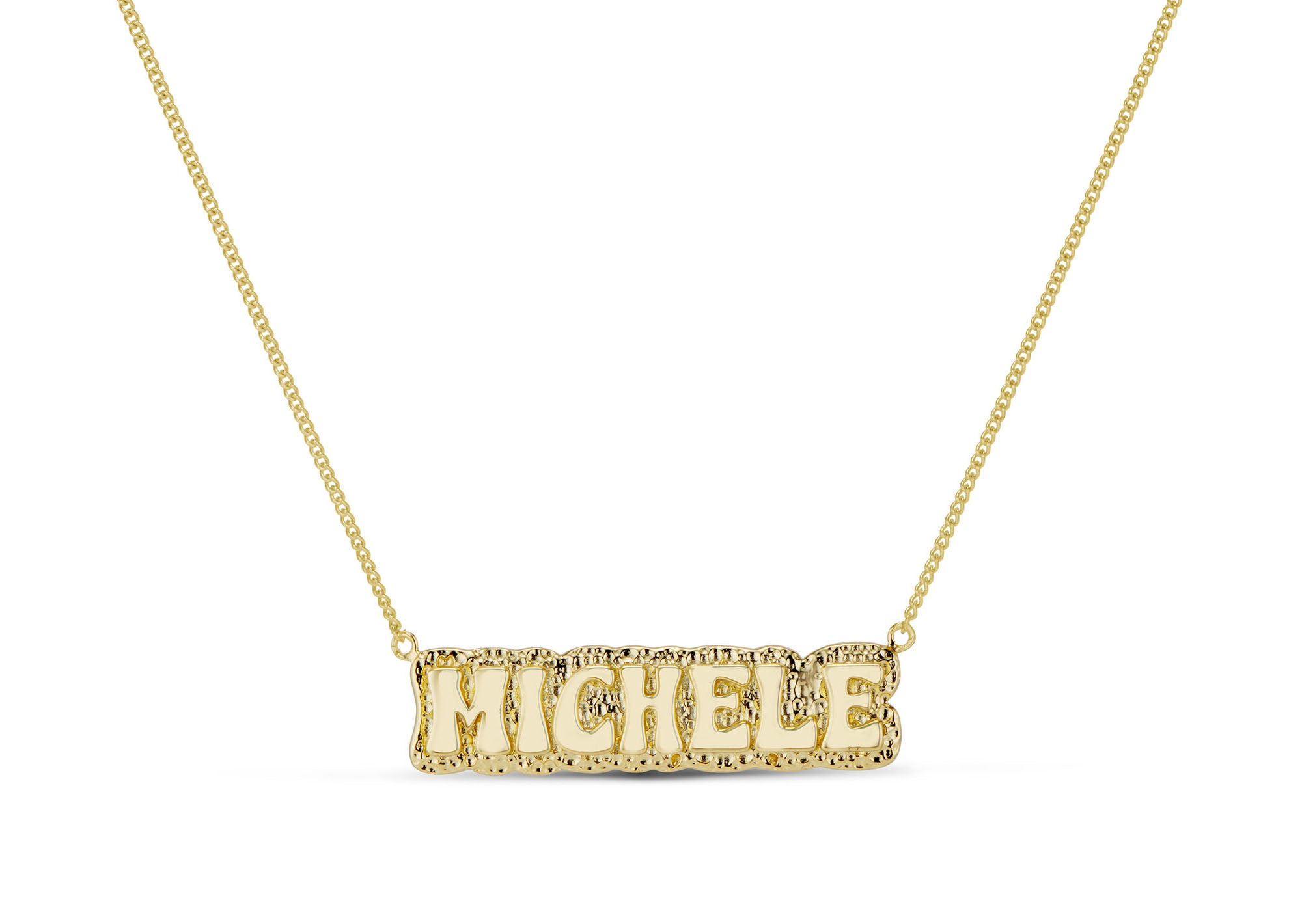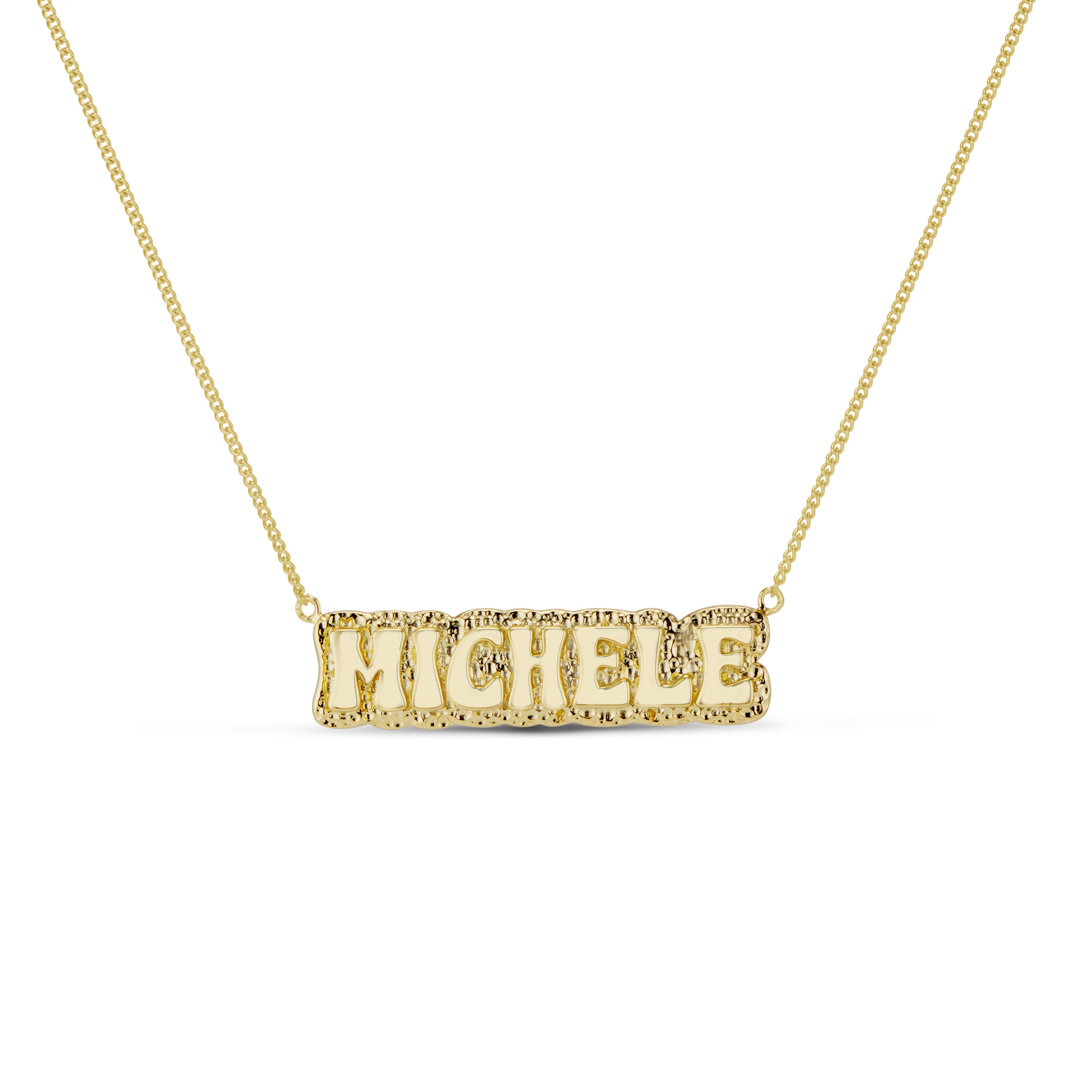 Introducing our custom name necklace collection, crafted with 925 sterling silver and available in your choice of 14k gold plating or rhodium plating. We offer 9 stylish design options for you to choose from. Personalize your necklace with your name or a special word and enjoy a unique and fashionable accessory.