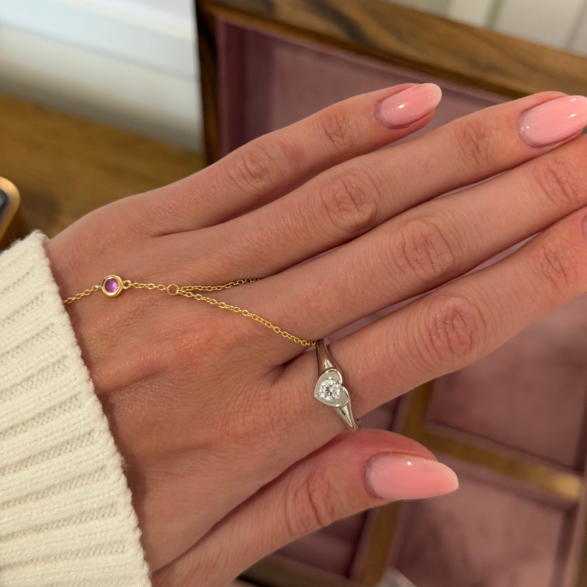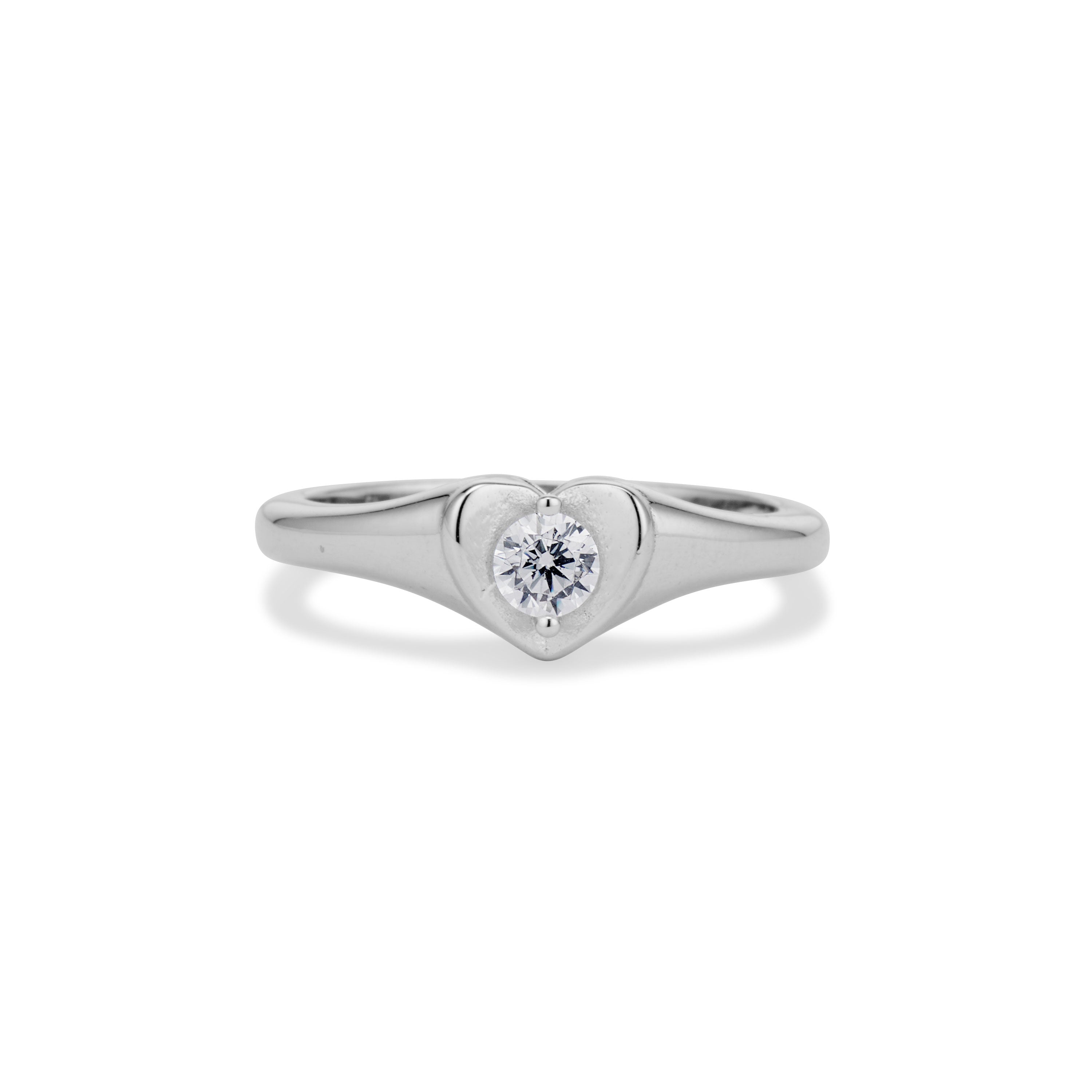 The Heartline Ring features a single stone cradled in a sculpted heart setting, designed to sit close and feel personal. Its smooth band and clean silhouette make it perfect for stacking, gifting, or wearing solo as an everyday signature.