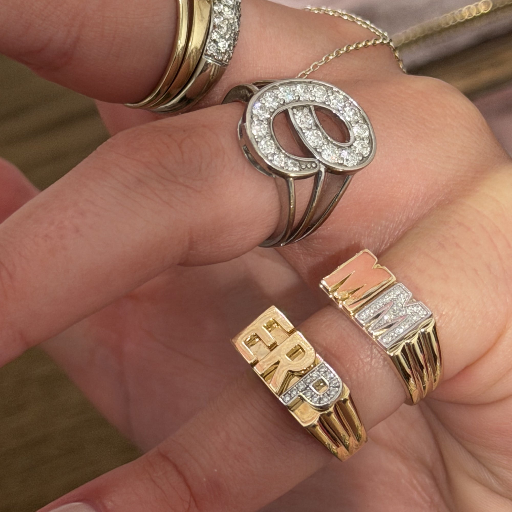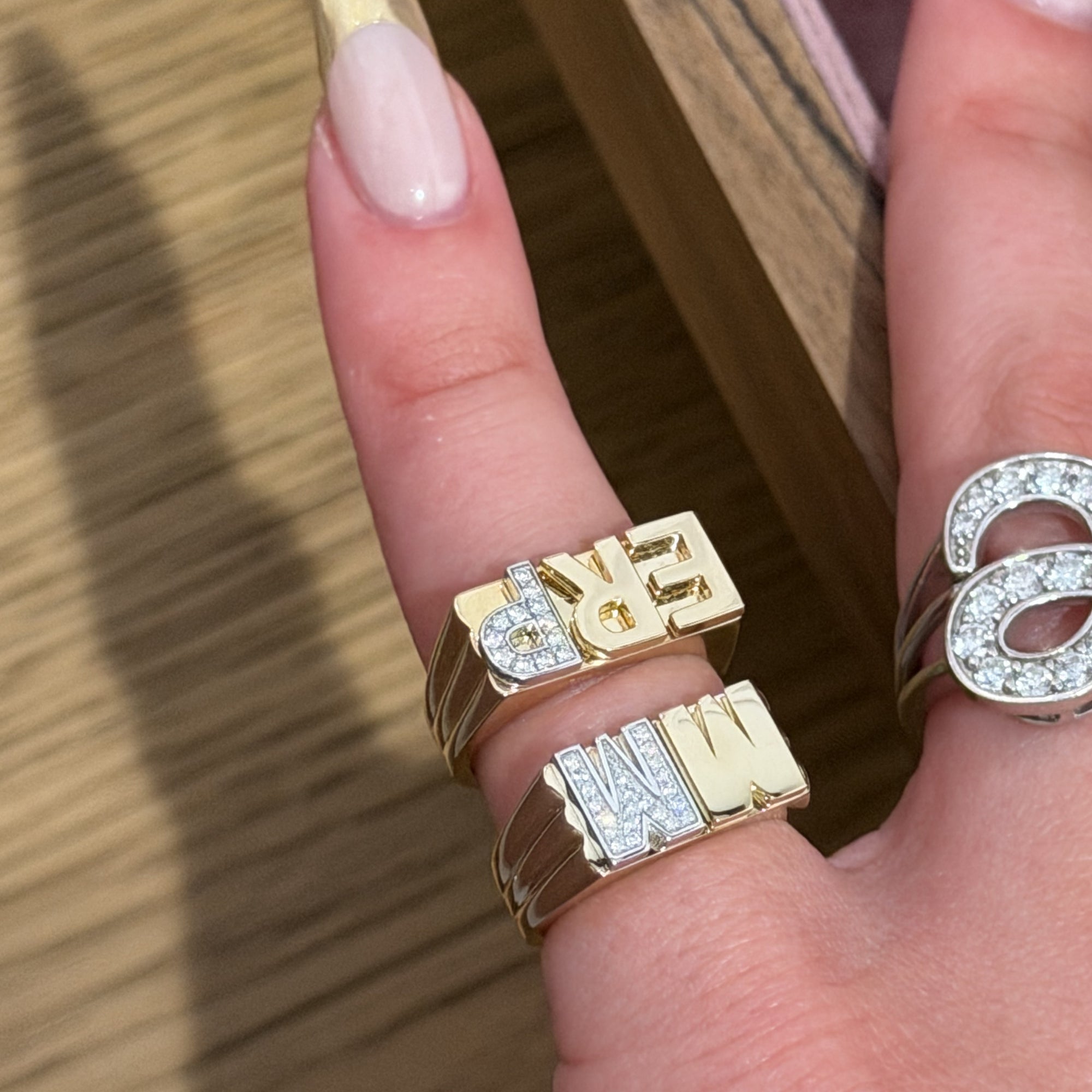 Worn daily by Evange for over two years - now yours. The two tone solid 14k gold + lab diamond initial pinky ring is a classic that started EP Timeless.